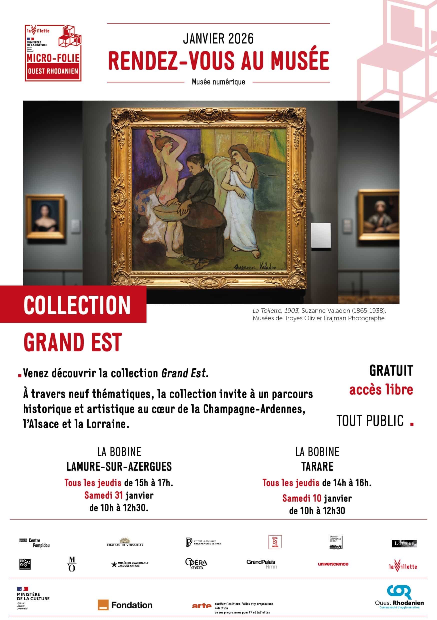 Dans l’Ouest Rhodanien, la Micro-Folie s’installe au cœur de La Bobine Lamure-sur-Azergues, la Bobine Tarare et la Manufacture de Thizy-les-Bourgs et propose une nouvelle offre culturelle gratuite à tous les habitants : un musée numérique qui donne accès aux chefs d’œuvre des plus grands musées nationaux.