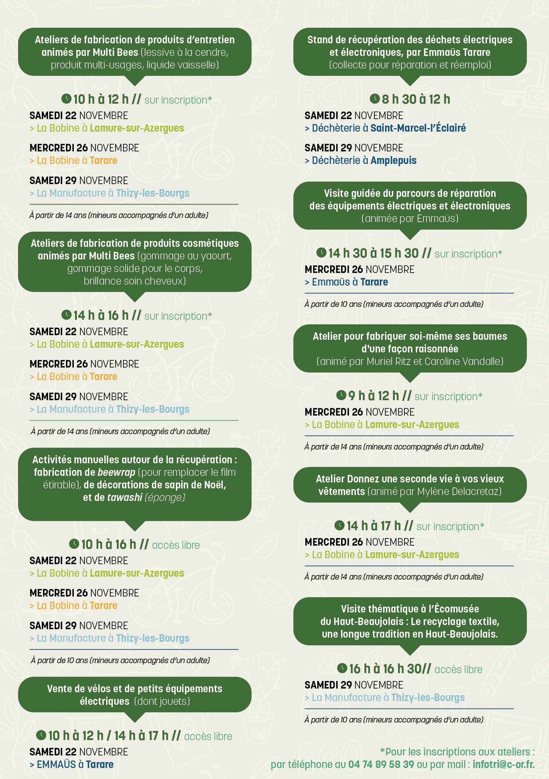 Pour les inscriptions aux ateliers : par téléphone au 04 74 89 58 39 ou par mail : infotri@c-or.fr.