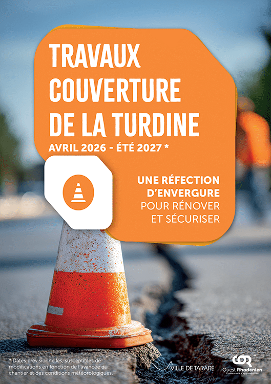 La Turdine est la rivière qui traverse Tarare. Dans le centre-ville, elle est partiellement couverte : canalisée sous des chaussées et des ouvrages, pour permettre l’urbanisation et la circulation. Aujourd’hui, la COR mène un projet de réparation et de renforcement de cette couverture, afin de garantir la sécurité et la pérennité des infrastructures.